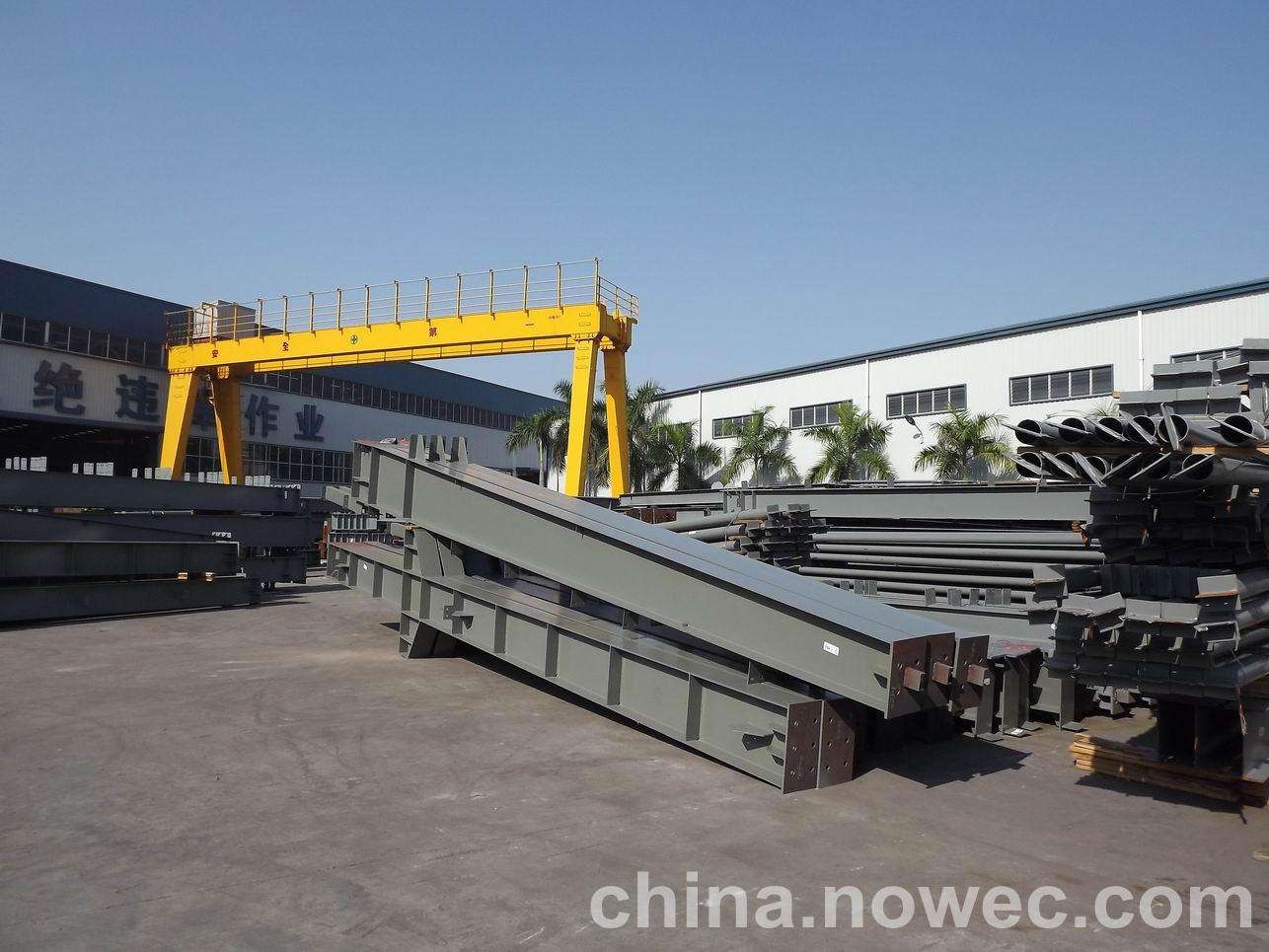 条状单元一般沿长跨方向分割,其宽度约为1~3个网格,其长度为l2或l2/2(l2为短跨跨距)。块状单元一般沿江都网架平面纵横向分割成矩形或正方形单元。每个单元的重量以现有起重机能胜任为准。条(块)与条(块)之间可以直接拼装,也可空一网格在高空拼装。由于条(块)状单元是在地面拼装,因而高空作业量较高空散装法大为减少,拼装支架也减少很多,又能充分利用现有起重设备,故较经济。这种安装方法适用于分割后网架的钢度和受力状况改变较小的各类中小型网架,如两向正交正放四角锥、正放抽空四角锥等网架。